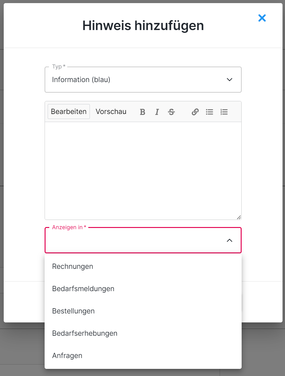 1. Jeder Mitarbeiter soll über Link Bedarf abgeben können
