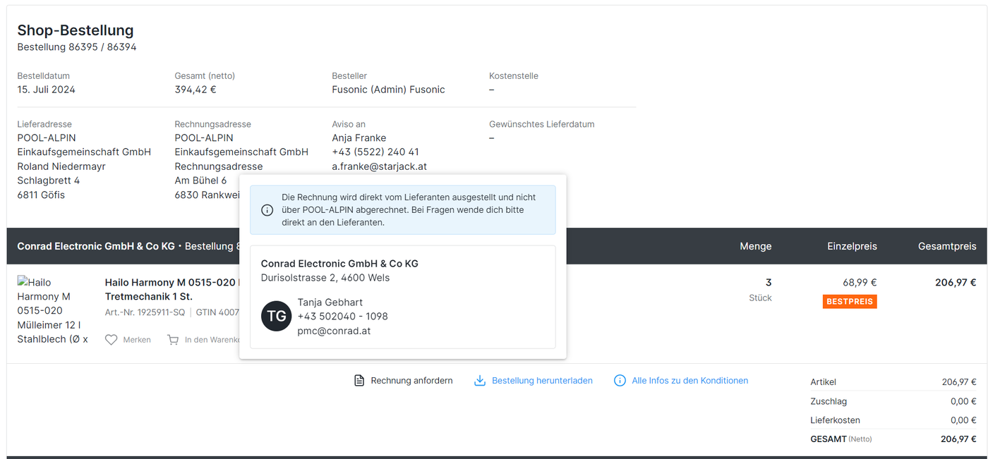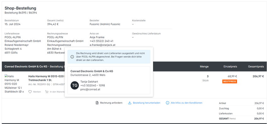 Es wird wieder die richtige Rechnungsadresse bei Verrechnungslieferanten in der XML Bestellung verwendet.